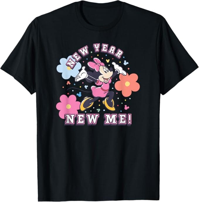 Disney Minnie Mouse Pastel Flowers New Year New Me T-Shirt – $19.99